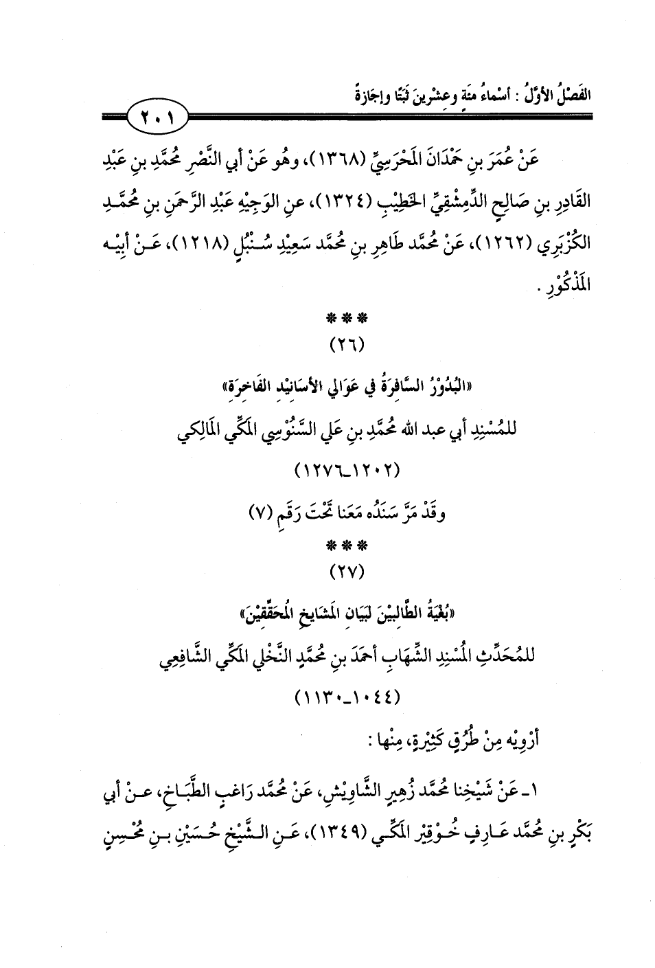 «البُدُوْرُ السَّافِرَةُ في عَوَالي الأسَانِيْدِ الفَاخِرَةِ»
