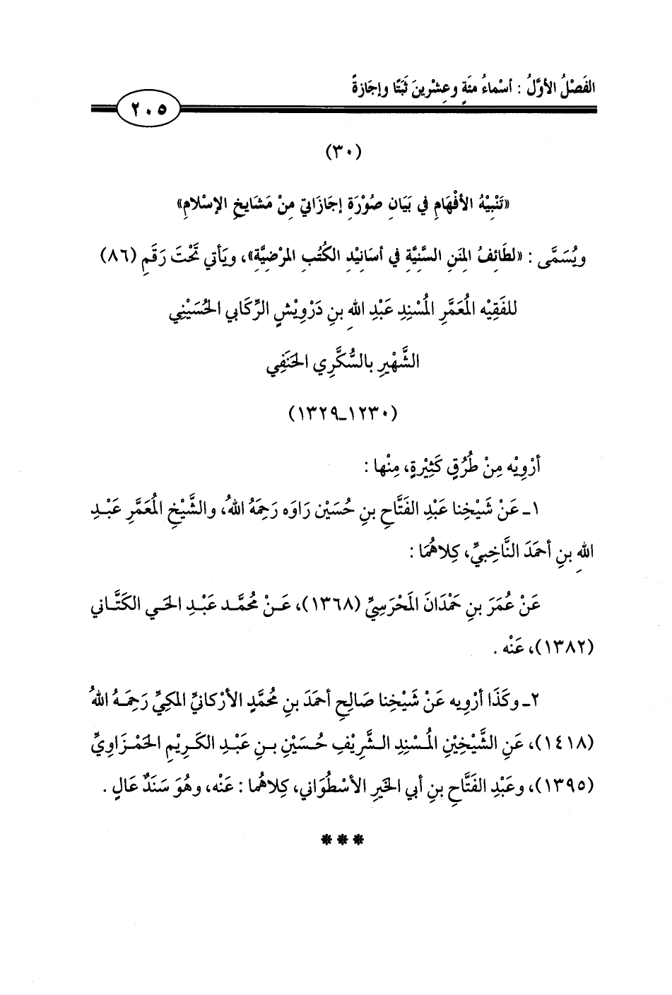 «تَنْبِيْهُ الأفْهَامِ في بَيَانِ صُوْرَةِ إجَازَاتي مِنْ مَشَايخِ الإسْلامِ»