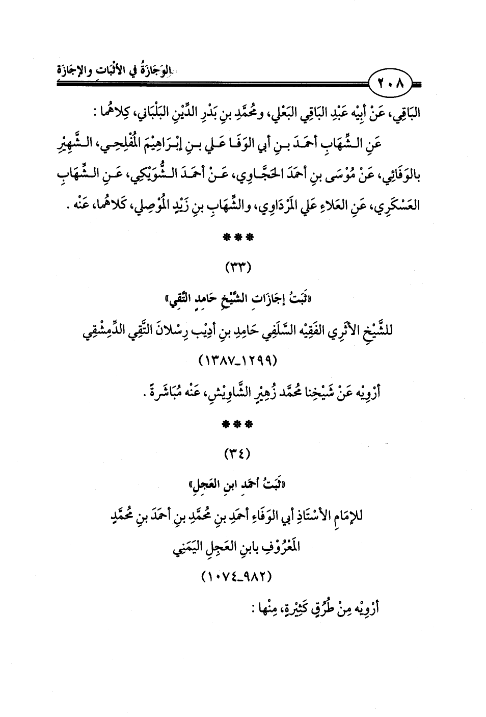 «ثَبَتُ إجَازَاتِ الشَّيْخِ حَامِدٍ التَّقِي»