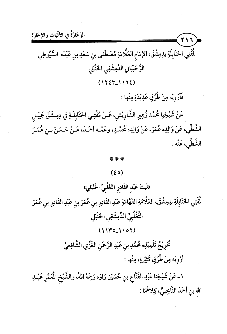 مُفْتِي الحَنَابِلَةِ بدِمِشْقَ الإمَامِ العَلَّامَةِ مُصْطَفى بنِ سَعْدِ بنِ عَبْدَه السُّيُوطِي الرُّحَيْبَاني الدِّمِشْقِي الحَنْبَلي (1164 ـ 1243)