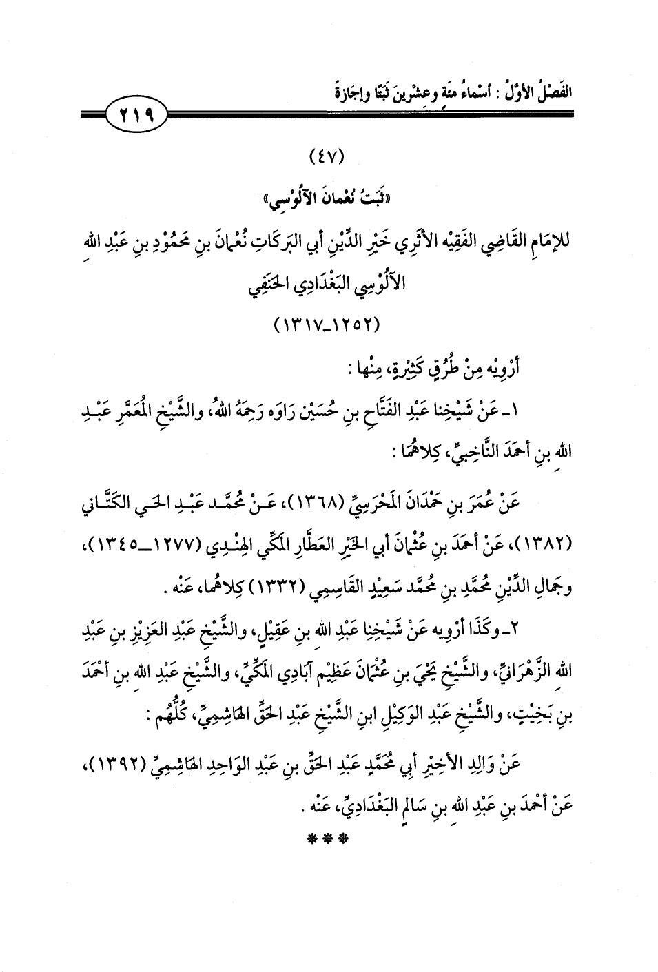 للإمَامِ القَاضِي الفَقِيْه الأثَرِي خَيْرِ الدِّيْنِ أبي البَركَاتِ نُعْمانَ بنِ مَحمُوْدِ بنِ عَبْدِ اللهِ الآلُوْسِي البَغْدَادِي الحَنَفِي (1252 ـ 1317)