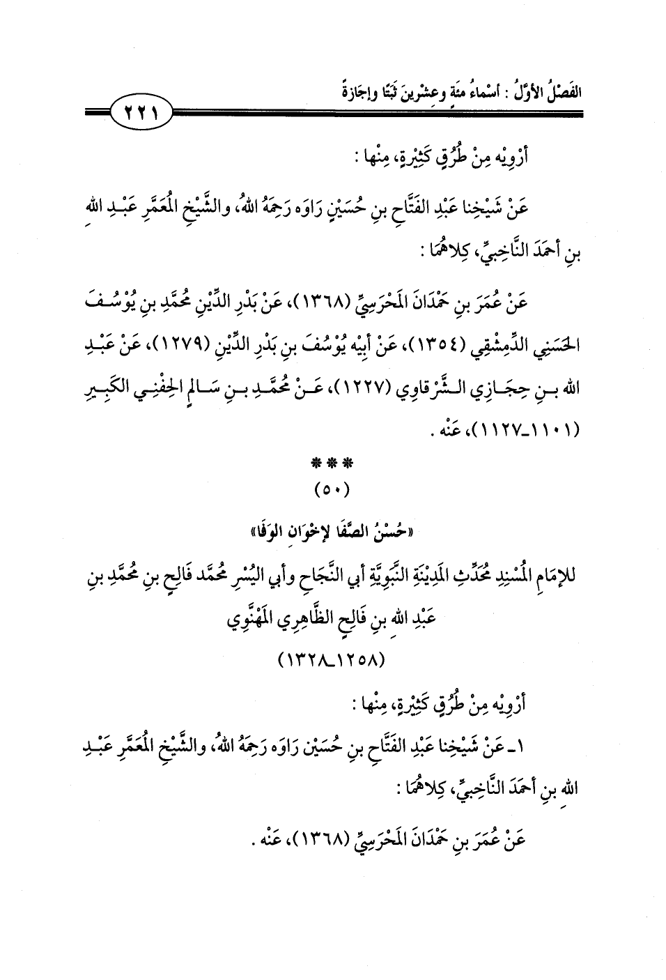 للإمَامِ المُسْنِدِ مُحَدِّثِ المَدِيْنَةِ النَّبَوِيَّةِ أبي النَّجَاحِ وأبي اليُسْرِ مُحمَّد فَالِحٍ بنِ مُحمَّدِ بنِ عَبْدِ اللهِ بنِ فَالِحٍ الظَّاهِرِي المَهْنَّوِي (1258 ـ 1328)
