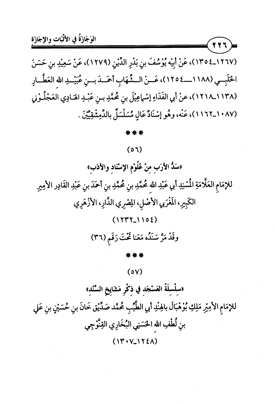 «سَدُّ الأرَبِ مِنْ عُلُوْمِ الإسْنَادِ والأدَبِ»