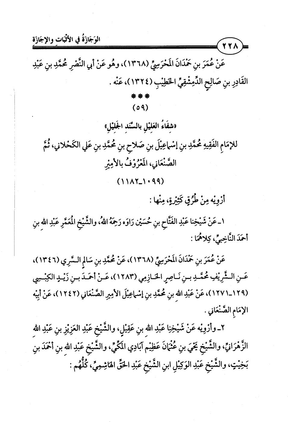 «شِفَاءُ العَلِيْلِ بالسَّنَدِ الجَلِيْلِ»