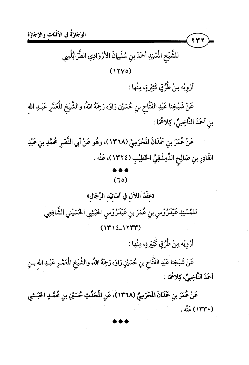 للمُسْنِدِ عَيْدَرُوْسِ بنِ عُمَرَ بنِ عَيْدَرُوْسٍ الحَبَشِي الحُسَيْني الشَّافِعِي (1233 ـ 1314)