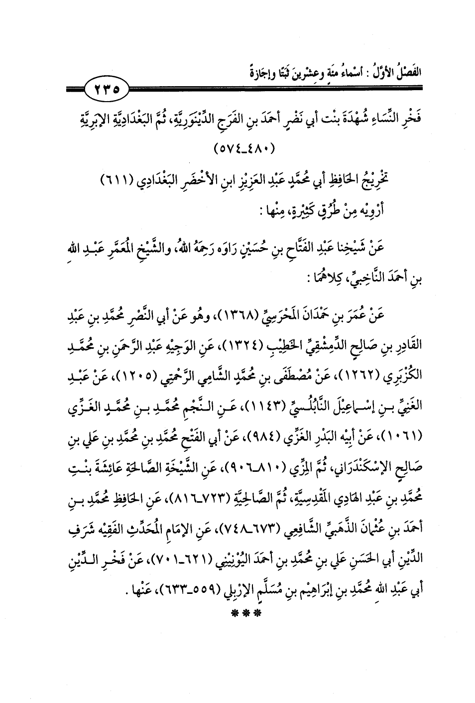 فَخْرِ النِّسَاءِ شُهْدَةَ بنْت أبي نَضْرٍ أحمَدَ بنِ الفَرَجِ الدِّيْنَوَرِيَّةِ، ثُمَّ البَغْدَادِيَّةِ الإبَرِيَّةِ (480 ـ 574)