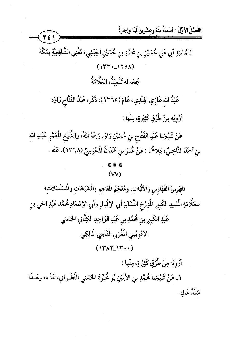 للعَلَّامَةِ المُسْنِدِ الكَبِيرِ المُؤرِّخِ النَّسَّابَةِ أبي الإقْبَالِ وأبي الإسْعَادِ مُحمَّد عَبْدِ الحي بنِ عَبْدِ الكَبِيرِ بنِ مُحمَّدِ بنِ عَبْدِ الوَاحِدِ الكِتَّاني الحَسَنِي الإدْرِيْسِي المَغْرَبي الفَاسِي المَالِكِي (1300 ـ 1382)