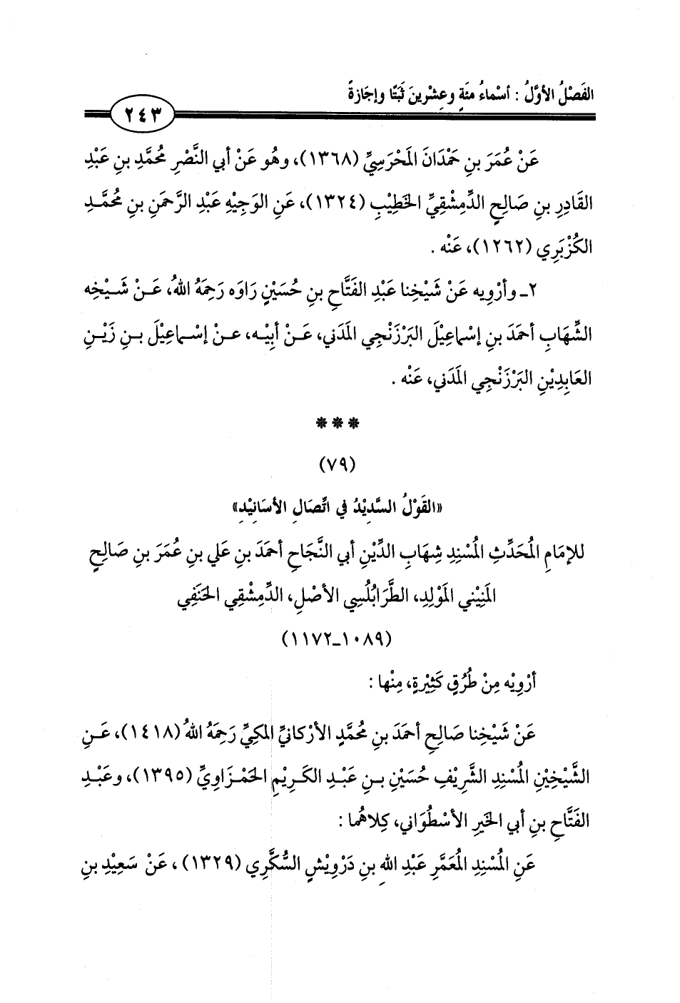 «القَوْلُ السَّدِيْدُ في اتِّصَالِ الأسَانِيْدِ»