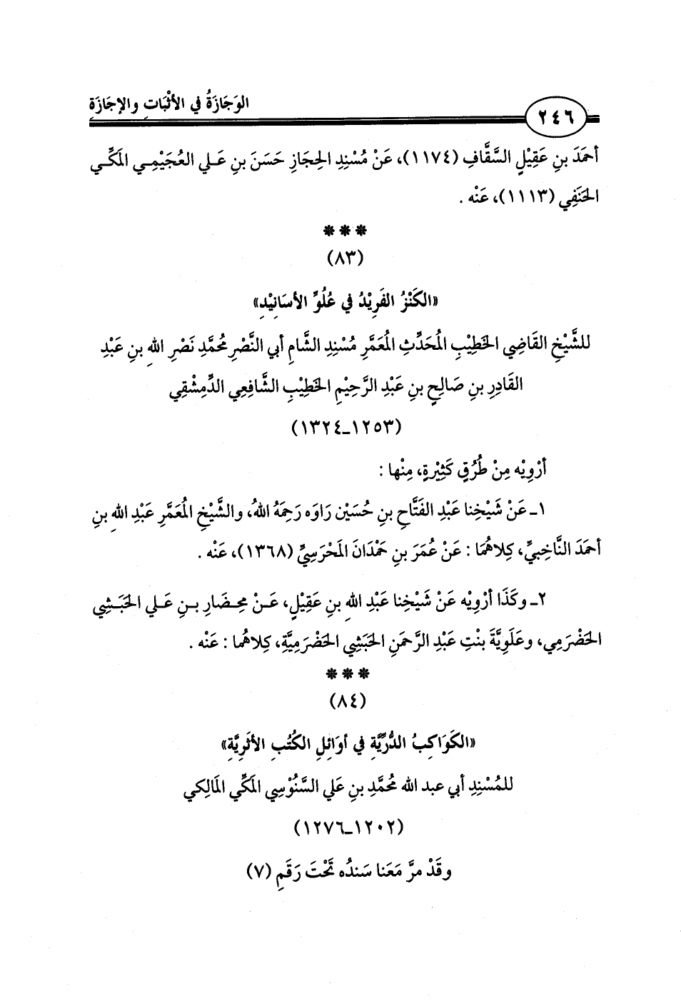 «الكَنْزُ الفَرِيْدُ في عُلُوِّ الأسَانِيْدِ»