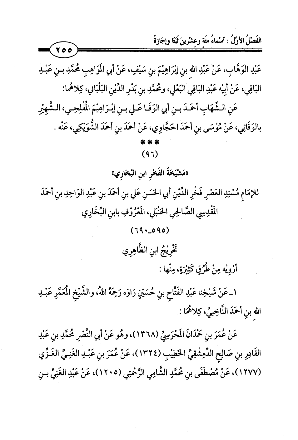 للإمَامِ مُسْنِدِ العَصْرِ فَخْرِ الدِّيْنِ أبي الحَسَنِ عَلي بنِ أحمَدَ بنِ عَبْدِ الوَاحِدِ بنِ أحمَدَ المَقْدِسِي الصَّالحِي الحَنْبَلي، المَعْرُوْفِ بابنِ البُخَارِي (595 ـ 690)