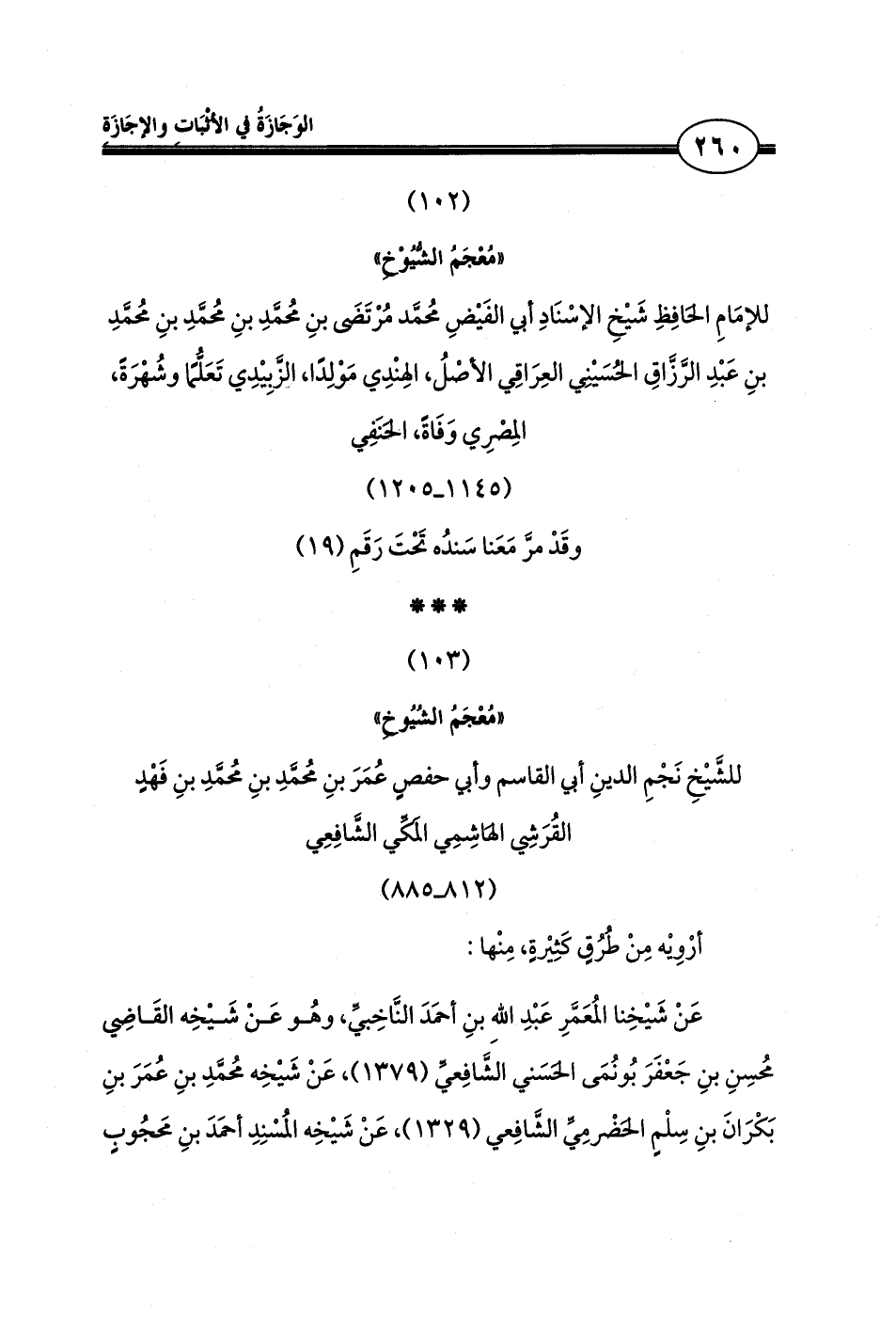 للشَّيْخِ نَجْمِ الدينِ أبي القاسم وأبي حفصٍ عُمَرَ بنِ مُحمَّدِ بنِ مُحمَّدِ بنِ فَهْدٍ القُرَشِي الهَاشِمِي المَكِّي الشَّافِعِي