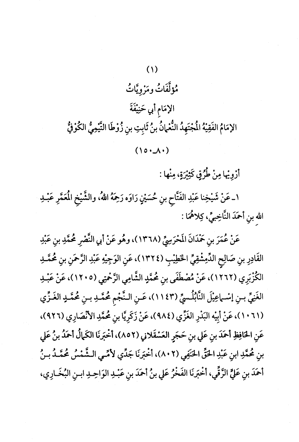 مُؤلَّفَاتُ ومَرْوِيَّاتُ الإمَامِ أبي حَنِيْفَةَ الإمَامُ الفَقِيْهُ المُجْتَهِدُ النُّعْمانُ بنُ ثَابِتِ بنِ زُوْطَا التَّيْمِيُّ الكُوْفيُّ (80 ـ 150)