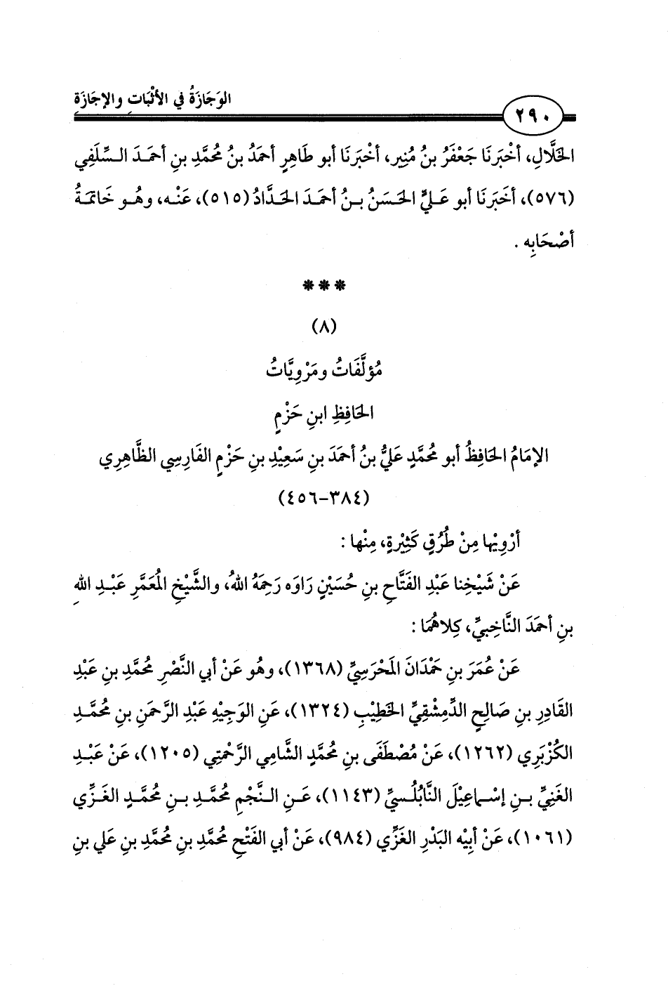 مُؤلَّفَاتُ ومَرْوِيَّاتُ الحَافِظِ ابنِ حَزْمٍ الإمَامُ الحَافِظُ أبو مُحمَّدٍ عَليُّ بنُ أحمَدَ بنِ سَعِيْدِ بنِ حَزْمٍ الفَارِسِي الظَّاهِرِي (384 - 456)