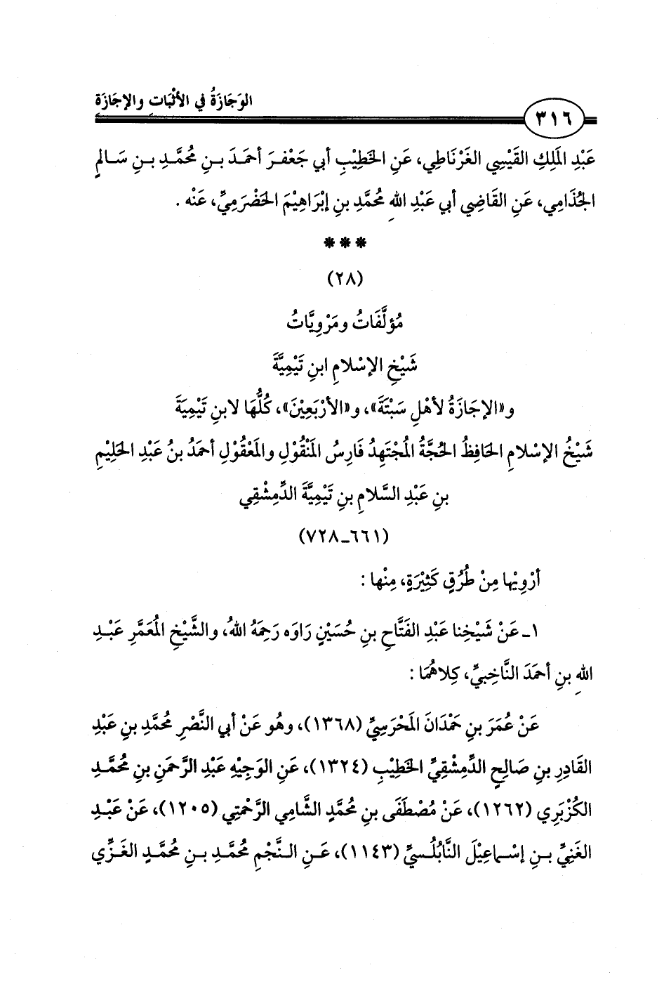 مُؤلَّفَاتُ ومَرْوِيَّاتُ شَيْخِ الإسْلامِ ابنِ تَيْمِيَّةَ و «الإجَازَةُ لأهْلِ سَبْتَةَ»، و «الأرْبَعِيْنَ»، كُلُّهَا لابنِ تَيْمِيَةَ شَيْخُ الإسْلامِ الحَافِظُ الحُجَّةُ المُجْتَهِدُ فَارِسُ المَنْقُوْلِ والمَعْقُوْلِ أحمَدُ بنُ عَبْدِ الحَلِيْمِ بنِ عَبْدِ السَّلامِ بنِ تَيْمِيَّةَ الدِّمِشْقِي (661 ـ 728)