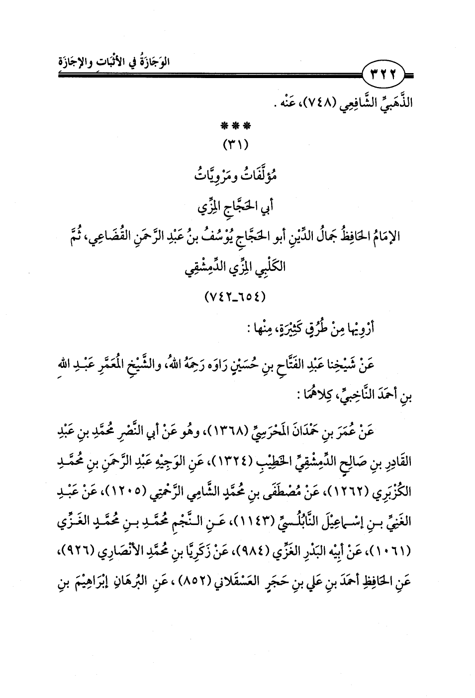 مُؤلَّفَاتُ ومَرْوِيَّاتُ أبي الحَجَّاجِ المِزِّي الإمَامُ الحَافِظُ جَمالُ الدِّيْنِ أبو الحَجَّاجِ يُوْسُفُ بنُ عَبْدِ الرَّحمَنِ القُضَاعِي، ثُمَّ الكَلْبِي المِزِّي الدِّمِشْقِي (654 ـ 742)