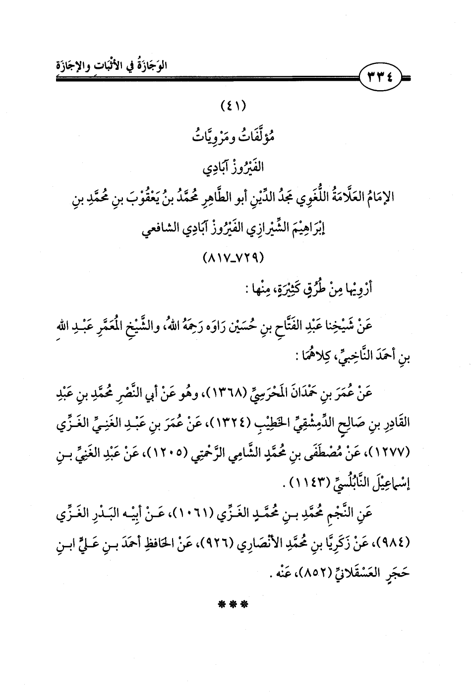 مُؤلَّفَاتُ ومَرْوِيَّاتُ الفَيْرُوزْ آبَادِي الإمَامُ العَلَّامَةُ اللُّغَوِي مَجدُ الدِّيْنِ أبو الطَّاهِرِ مُحمَّدُ بنُ يَعْقُوْبَ بنِ مُحمَّدِ بنِ إبْرَاهِيْمَ الشِّيْرازِي الفَيْرُوزْ آبَادِي الشافعي (729 ـ 817)