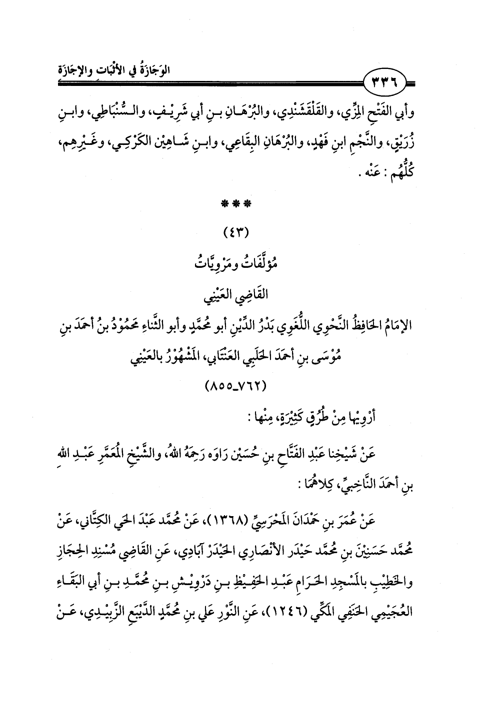 مُؤلَّفَاتُ ومَرْوِيَّاتُ القَاضِي العَيْنِي الإمَامُ الحَافِظُ النَّحْوِي اللُّغَوِي بَدْرُ الدِّيْنِ أبو مُحمَّدٍ وأبو الثَّناءِ مَحمُوْدُ بنُ أحمَدَ بنِ مُوْسَى بنِ أحمَدَ الحَلَبِي العَنْتَابي، المَشْهُوْرُ بالعَيْنِي (762 ـ 855)