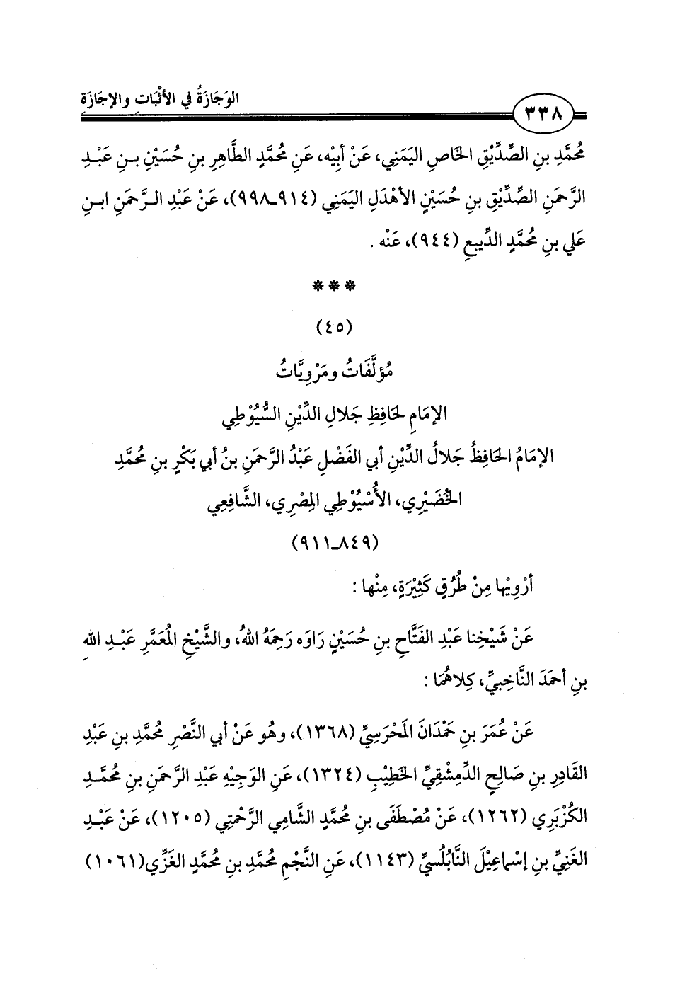 مُؤلَّفَاتُ ومَرْوِيَّاتُ الإمَامِ لحَافِظِ جَلالِ الدِّيْنِ السُّيُوْطِي الإمَامُ الحَافِظُ جَلالُ الدِّيْنِ أبي الفَضْلِ عَبْدُ الرَّحمَنِ بنُ أبي بَكْرٍ بنِ مُحمَّدِ الخُضَيْرِي، الأُسْيُوْطِي المِصْرِي، الشَّافِعِي (849 ـ 911)