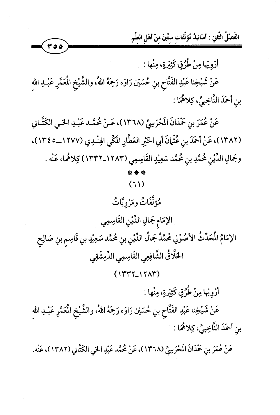 مُؤلَّفَاتُ ومَرْوِيَّاتُ الإمَامِ جَمالِ الدِّيْنِ القَاسِمِي الإمَامُ المُحَدِّثُ الأصُوْلي مُحمَّدٌ جَمالُ الدِّيْنِ بنِ مُحمَّد سَعِيْدٍ بنِ قَاسِمٍ بنِ صَالِحٍ الحَلَّاقُ الشَّافِعِي القَاسِمِي الدِّمِشْقِي (1283 ـ 1332)