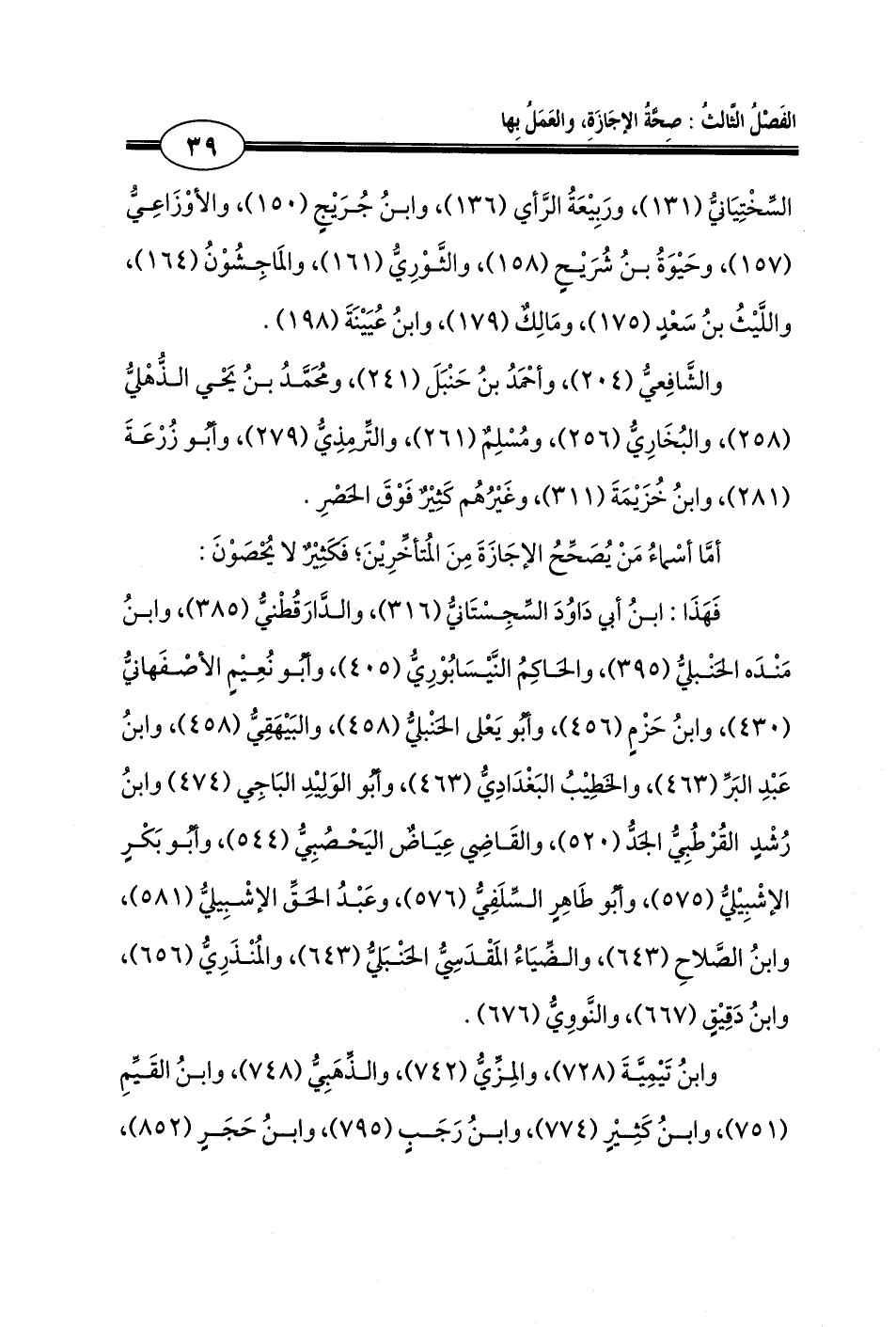فَهَذَا: ابنُ أبي دَاوُدَ السِّجِسْتَانيُّ (316)، والدَّارَقُطْنيُّ (385)، وابنُ مَنْدَه الحَنْبليُّ (395)، والحَاكِمُ النَّيْسَابُوْرِيُّ (405)، وأبُو نُعِيْمٍ الأصْفَهانيُّ (430)، وابنُ حَزْمٍ (456)، وأبُو يَعْلى الحَنْبليُّ (458)، والبَيْهَقِيُّ (458)، وابنُ عَبْدِ البَرِّ (463)، والخَطِيْبُ البَغْدَادِيُّ (463)، وأبُو الوَلِيْدِ البَاجِي (474) وابنُ رُشْدٍ القُرْطُبِيُّ الجَدُّ (520)، والقَاضِي عِيَاضٌ اليَحْصُبِيُّ (544)، وأبُو بَكْرٍ الإشْبِيْليُّ (575)، وأبُو طَاهِرٍ السِّلَفِيُّ (576)، وعَبْدُ الحَقِّ الإشْبِيليُّ (581)، وابنُ الصَّلاحِ (643)، والضِّيَاءُ المَقْدَسِيُّ الحَنْبَليُّ (643)، والمُنْذَرِيُّ (656)، وابنُ دَقِيْقٍ (667)، والنَّووِيُّ (676).