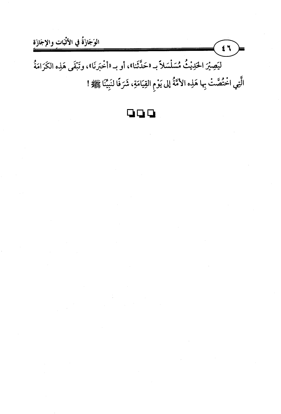 ليَصِيْرَ الحَدِيْثُ مُسَلْسَلاً بـ «حَدَّثَنا»، أو بـ «أخْبَرنَا»، وتَبْقَى هَذِه الكَرَامَةُ الَّتِي اخْتُصَّتْ بِها هَذِه الأمَّةُ إلى يَوْمِ القِيَامَةِ، شَرَفًا لنَبِيِّنَا - صلى الله عليه وسلم -!