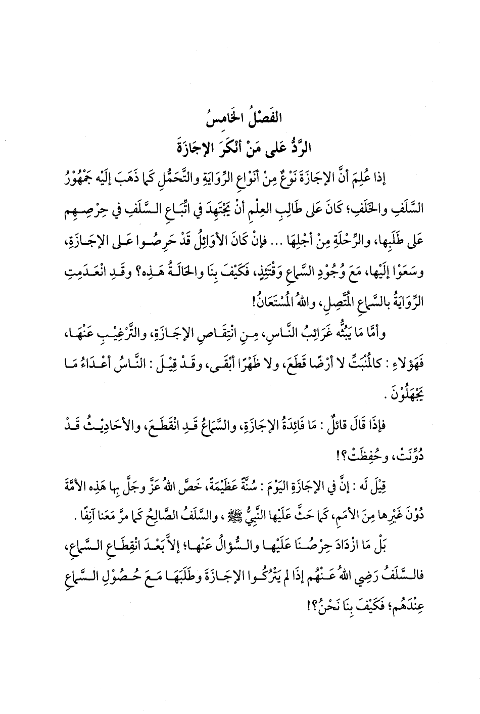 بَلْ مَا ازْدَادَ حِرْصُنَا عَلَيْها والسُّؤالُ عَنْها؛ إلاَّ بَعْدَ انْقِطَاعِ السَّماعِ، فالسَّلَفُ رَضِي اللهُ عَنْهُم إذَا لم يَتْرُكُوا الإجَازَةَ وطَلَبَهَا مَعَ حُصُوْلِ السَّماعِ عِنْدَهُم؛ فَكَيْفَ بِنَا نَحْنُ؟!