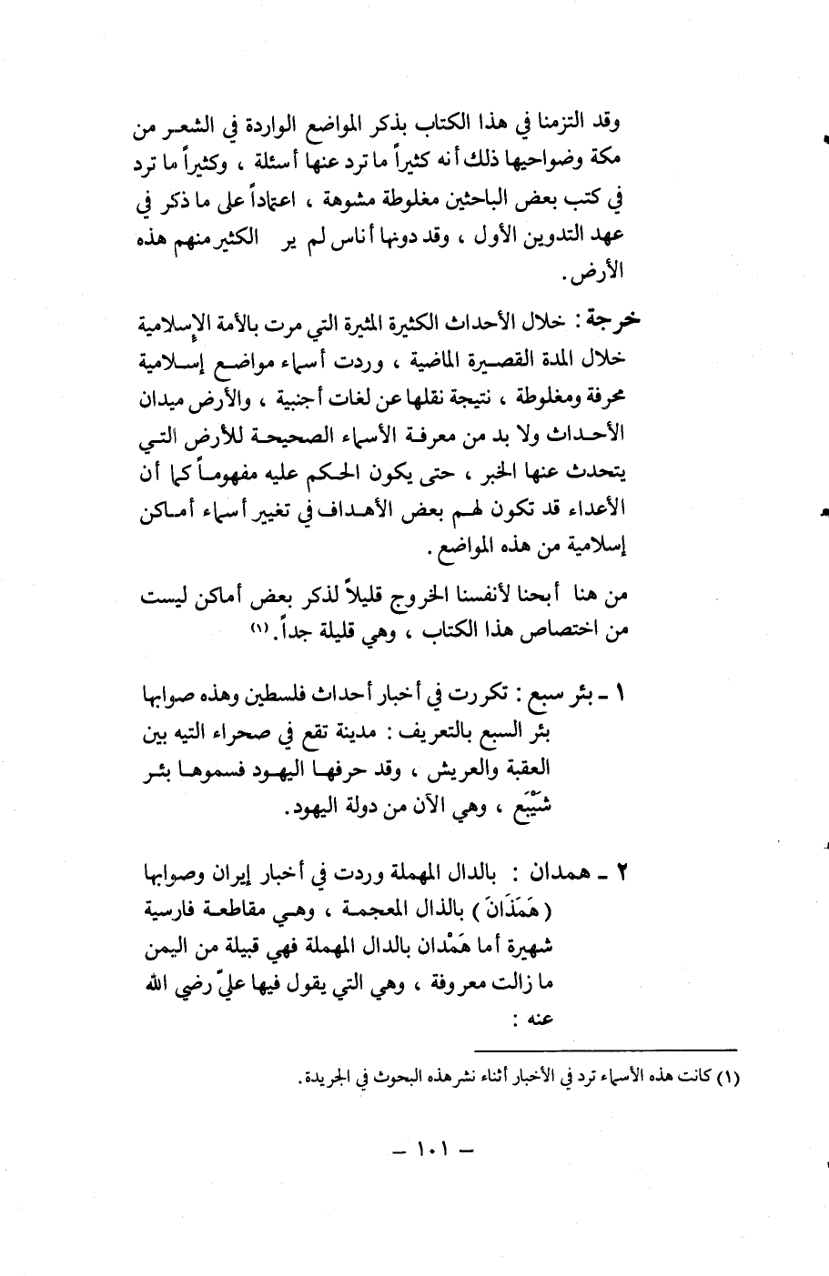2 - همدان: بالدال المهملة وردت في أخبار إيران وصوابها (هَمَذَانَ) بالذال المعجمة، وهي مقاطعة فارسية شهيرة أما هَمْدان بالدال المهملة فهي قبيلة من اليمن ما زالت معروفة، وهي التي يقول فيها عليّ رضي الله عنه: