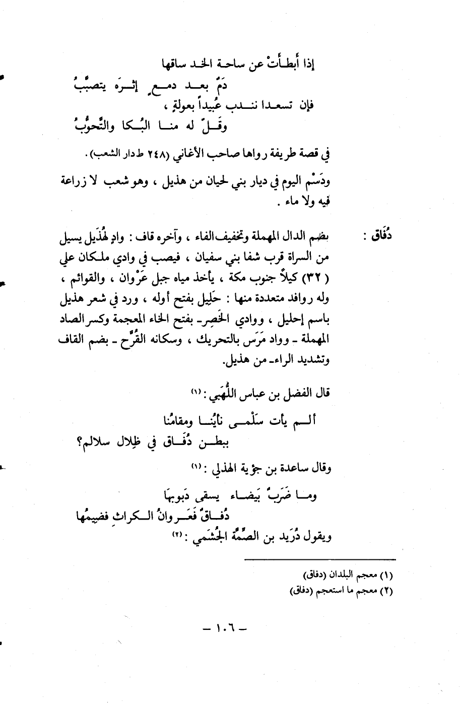 دُفَاق: بضم الدال المهملة وتخفيف الفاء، وآخره قاف: وادٍ لهُذَيل يسيل من السراة قرب شفا بني سفيان، فيصب في وادي ملكان علي (32) كيلاً جنوب مكة، يأخذ مياه جبل عَرْوان، والقوائم، وله روافد متعددة منها: حَلِيل بفتح أوله، ورد في شعر هذيل باسم إحليل، ووادي الخَصِر -بفتح الخاء المعجمة وكسر الصاد المهملة- وواد مَرَس بالتحريك، وسكانه القُرَّح -بضم القاف وتشديد الراء- من هذيل.