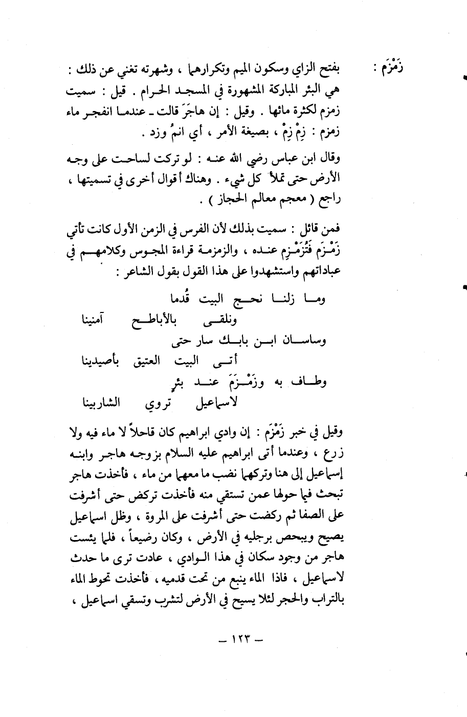 وطاف به وزَمْزَمَ عند بئرٍ ... لإسماعيل تروي الشاربينا