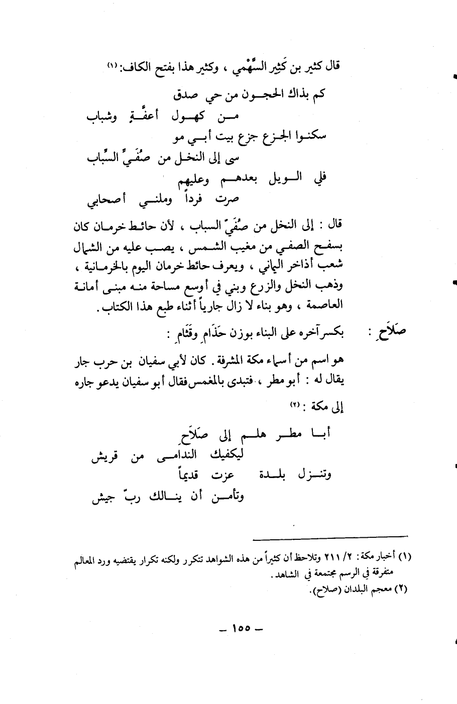 (¬1) أخبار مكة: 2/ 211 وتلاحظ أن كثيراً من هذه الشواهد تتكرر ولكنه تكرار يقتضيه ورد المعالم متفرقة في الرسم مجتمعة في الشاهد.