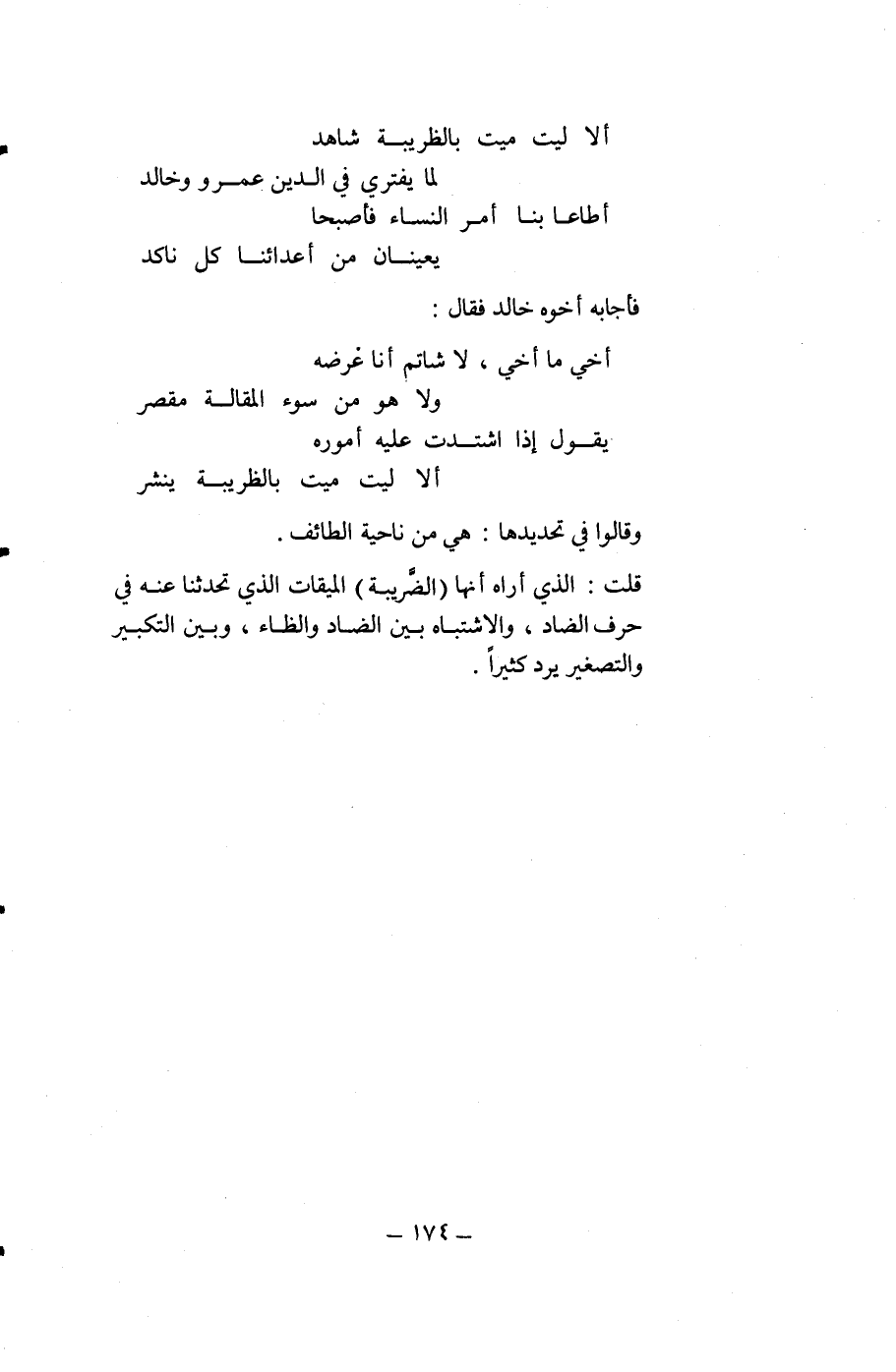 قلت: الذي أراه أنها (الضَّريبة) الميقات الذي تحدثنا عنه في حرف الضاد، والاشتباه بين الضاد والظاء، وبين التكبير والتصغير يرد كثيراً.