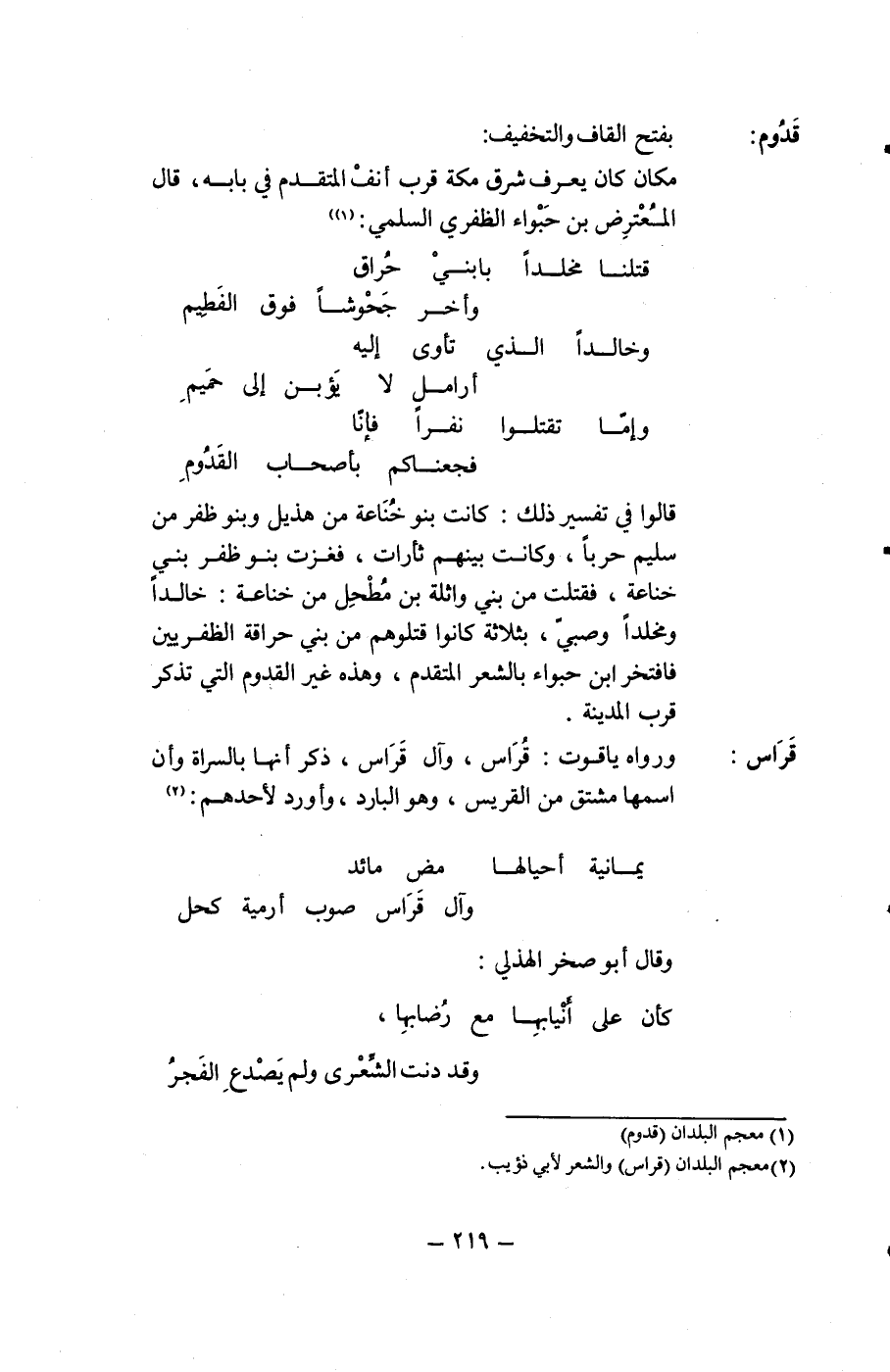 (¬2) معجم البلدان (قراس) والشعر لأبي ذؤيب.