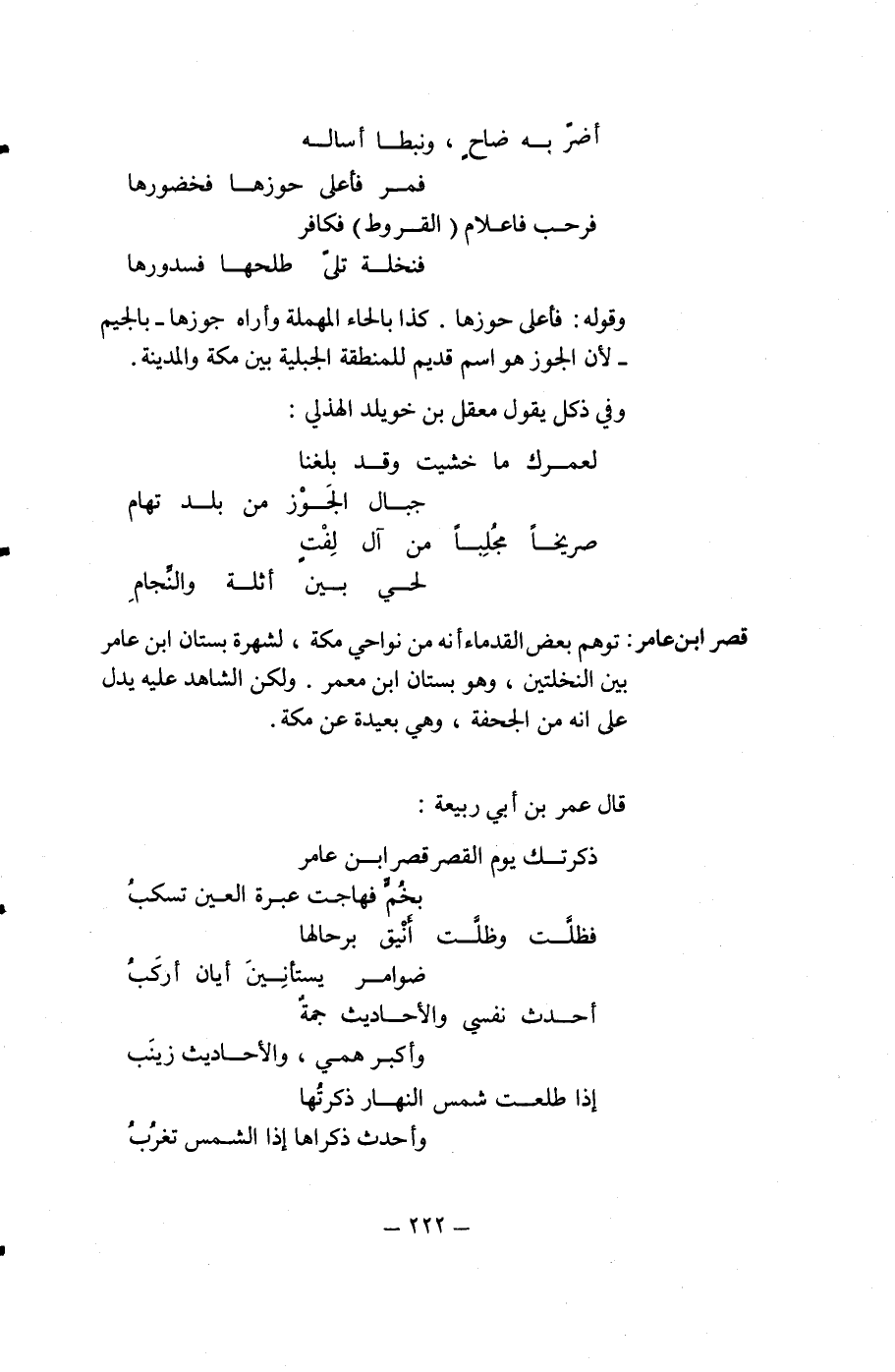 وقوله: فأعلى حوزها. كذا بالحاء المهملة وأراه جوزها -بالجيم - لأن الجوز هو اسم قديم للمنطقة الجبلية بين مكة والمدينة.