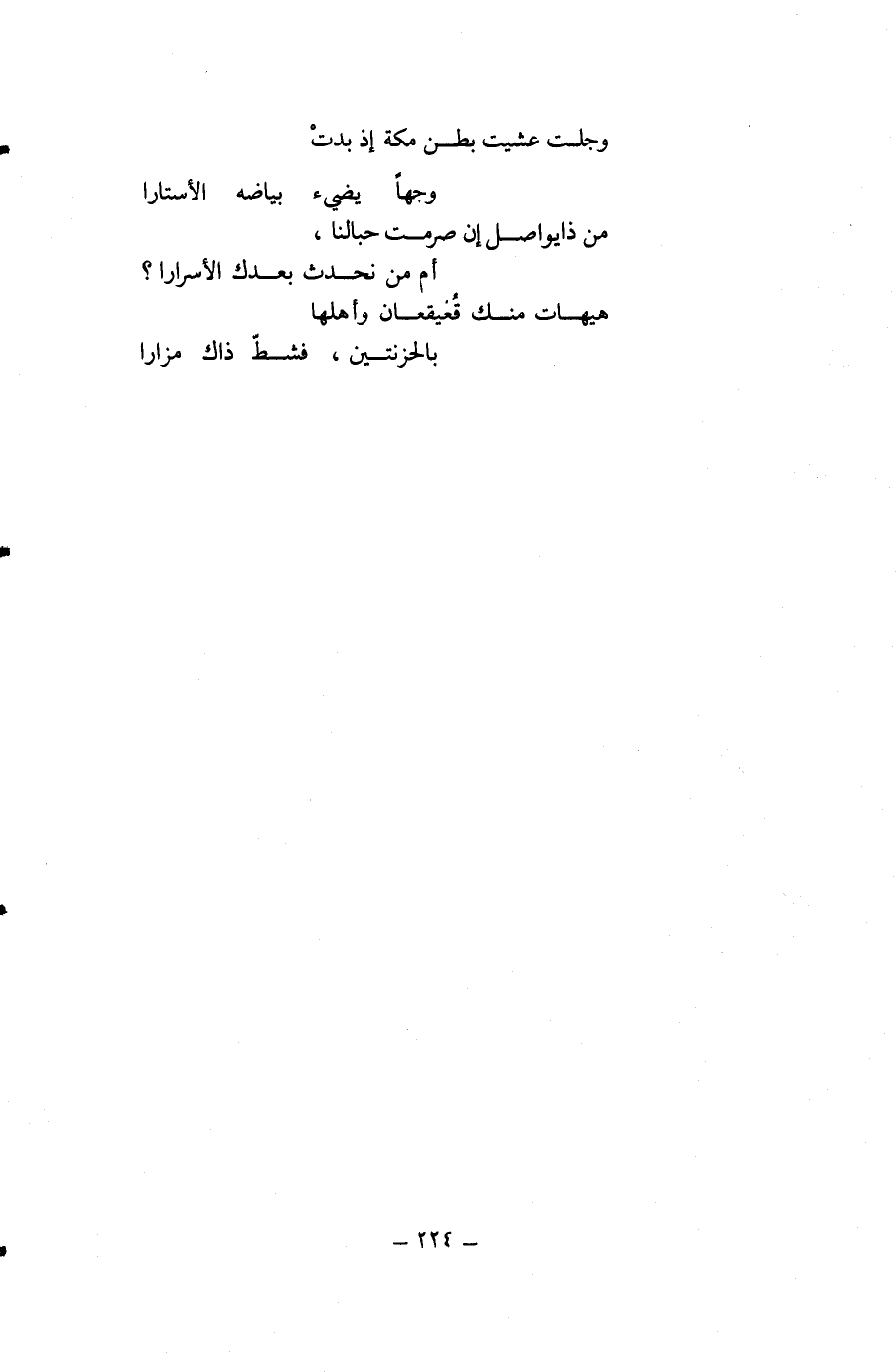 وجلت عشيت بطن مكة إذ بدتْ ... وجهاً يضيء بياضه الأستارا