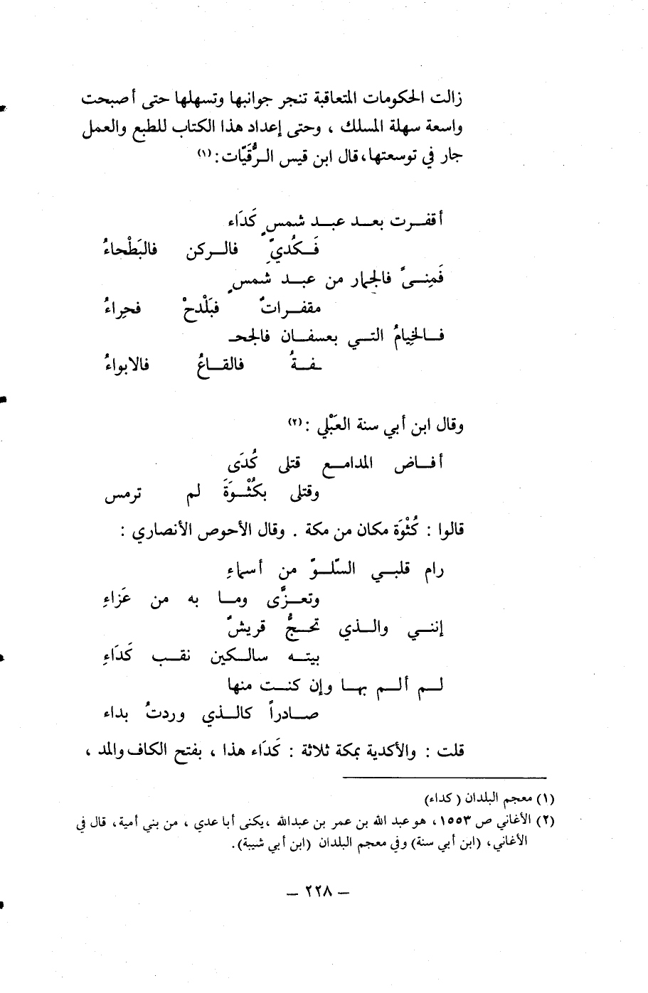 أقفرت بعد عبد شمسٍ كَدَاء ... فَكُديّ فالركن فالبَطْحاءُ