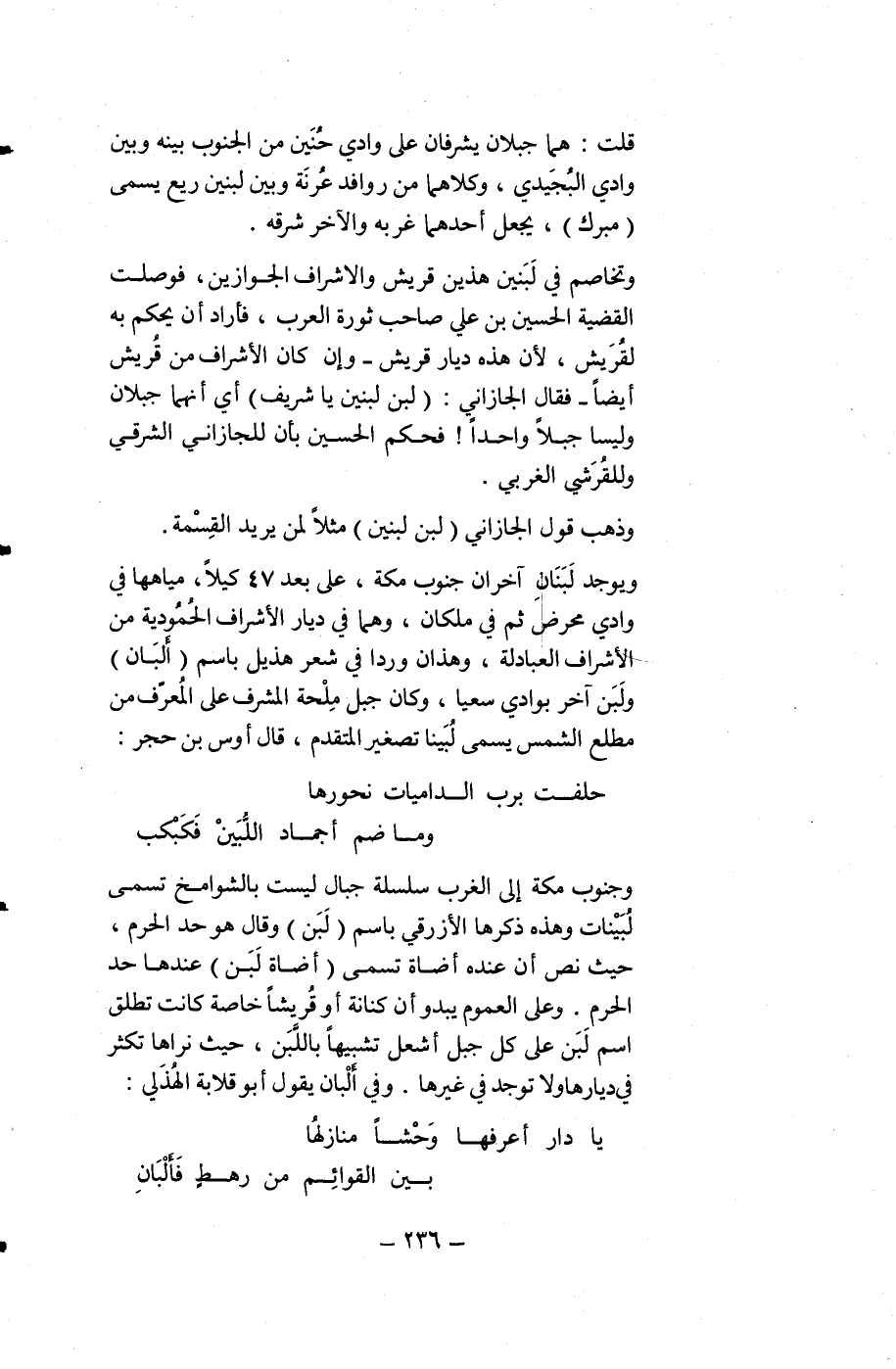وتخاصم في لَبَنين هذين قريش والأشراف الجوازين، فوصلت القضية الحسن بن علي صاحب ثورة العرب، فأراد أن يحكم به لقُرَيش، لأن هذه ديار قريش -وإن كان الأشراف من قريش أيضاً- فقال الجازاني: (لبن لبنين يا شريف) أي أنهما جبلان وليسا جبلاً واحداً! فحكم الحسن بأن للجازاني الشرقي وللقُرَشي الغربي.