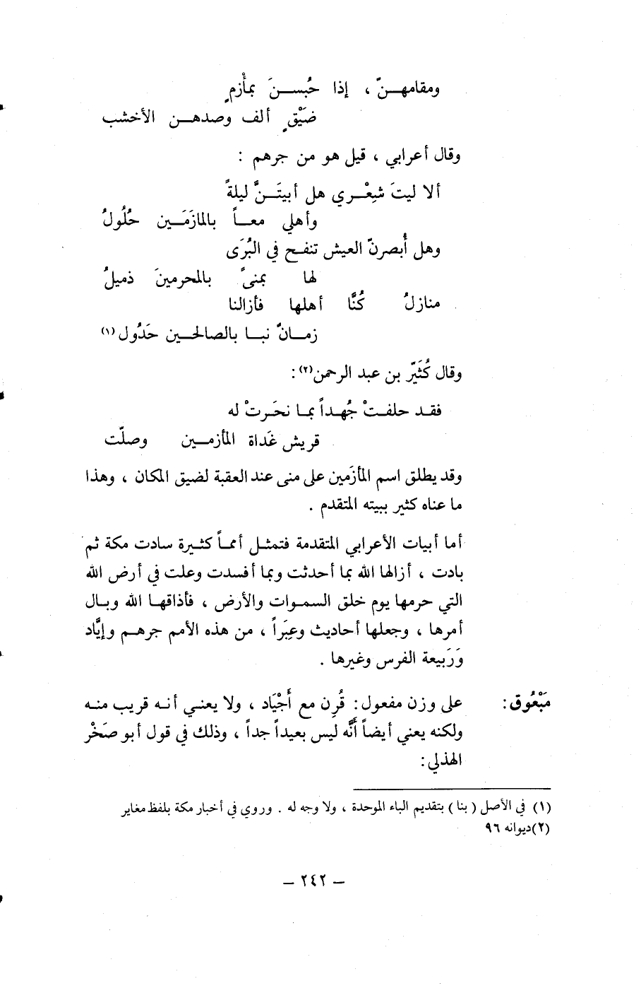 ألا ليتَ شِعْري هل أبيتَنَّ ليلةً ... وأهلي معاً بالمازَمَين حُلُولُ