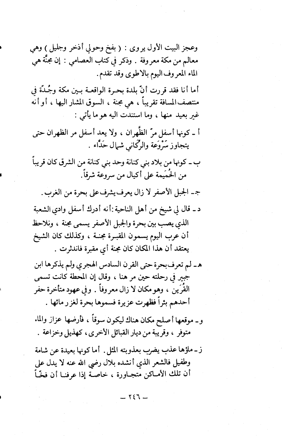 أما أنا فقد قررت أن بلدة بحرة الواقعة بين مكة وجُدّة في منتصف المسافة تقريباً، هي مجنة، السوق المشار إليها، أو أنه غير بعيد منها، وما استندت إليه هو ما يأتي: