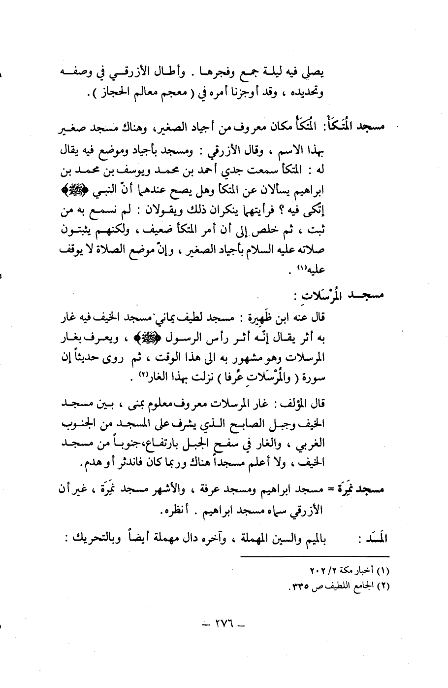 يصلى فيه ليلة جمع وفجرها. وأطال الأزرقي في وصفه وتحديده، وقد أوجزنا أمره في (معجم معالم الحجاز).