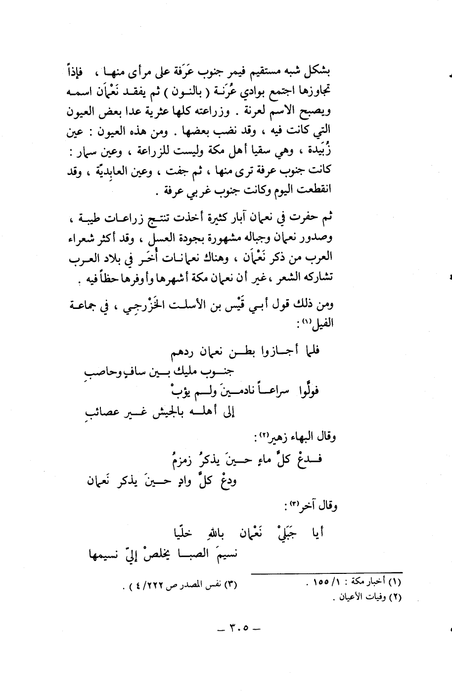 ثم حفرت في نعمان آبار كثيرة أخذت تنتج زراعات طيبة، وصدور نعمان وجباله مشهورة بجودة العسل، وقد أكثر شعراء العرب من ذكر نَعْماَن، وهناك نعمانات أُخَر في بلاد العرب تشاركه الشعر، غير أن نعمان مكة أشهرها وأوفرها حظاً فيه.
