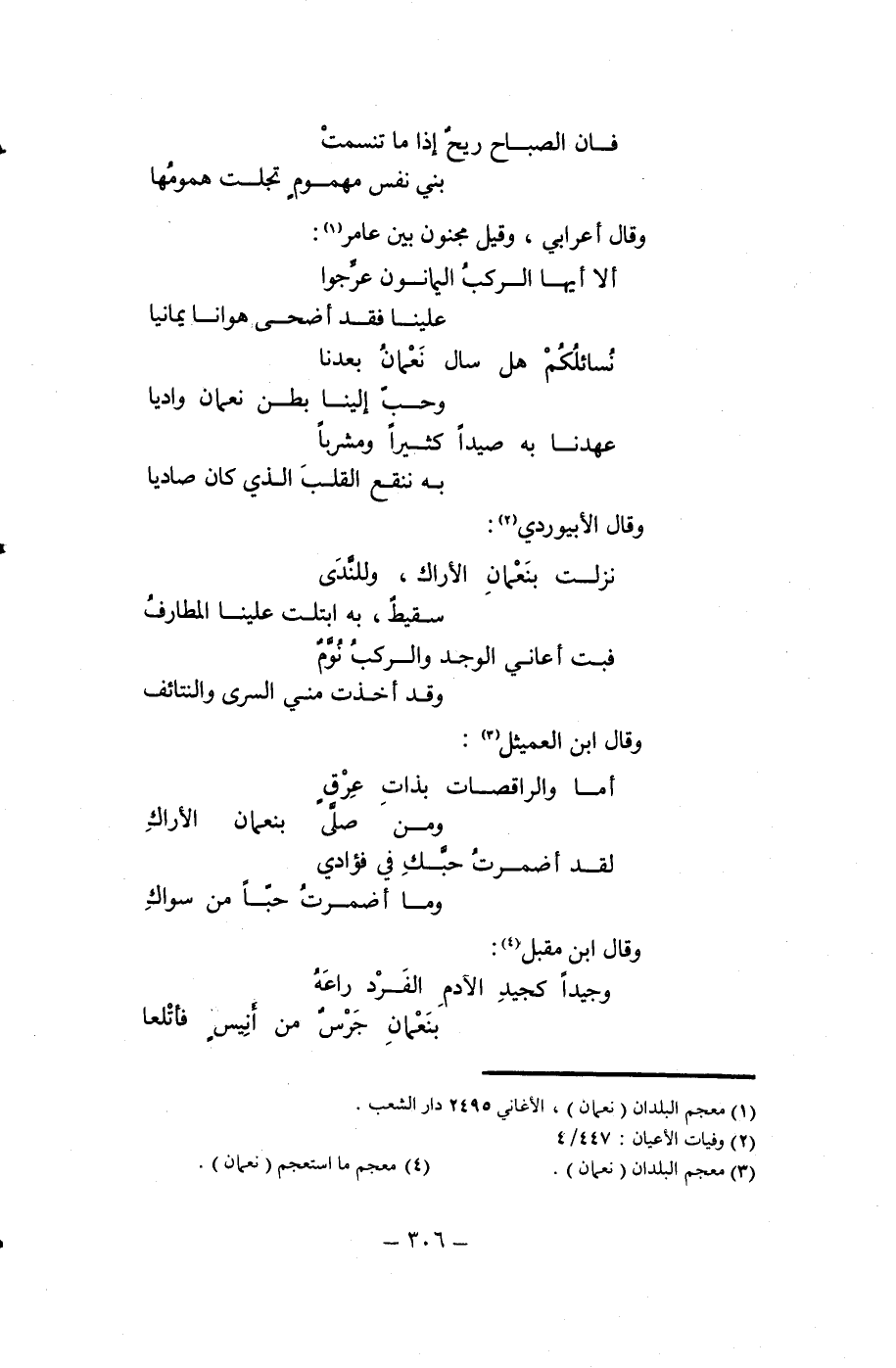 (¬1) معجم البلدان (نعمان)، الأغاني 2495 دار الشعب.