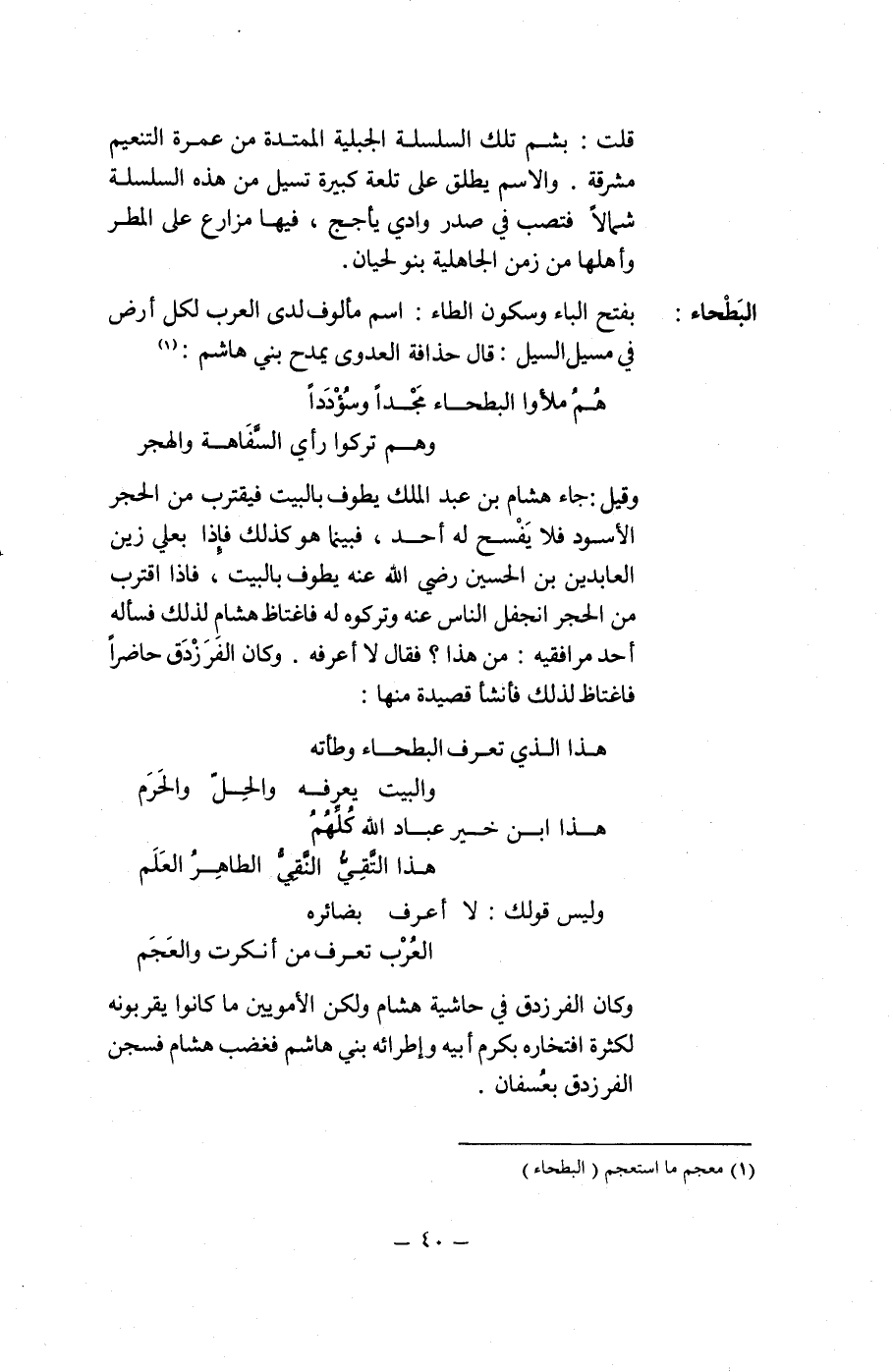 البَطْحاء: بفتح الباء وسكون الطاء: اسم مألوف لدى العرب لكل أرض في مسيل السيل: قال حذافة العدوى يمدح بني هاشم: (¬1)