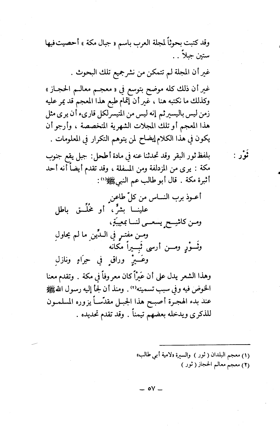 (¬1) معجم البلدان (ثور) والسيرة "لأمية أبي طالب".