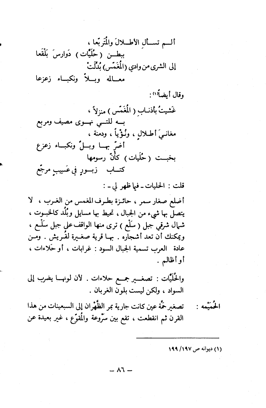 ألم تسألِ الأطلالَ والمُتَربّعا، ... ببطن (حُلَيَّات) دَوارسَ بَلْقَعا