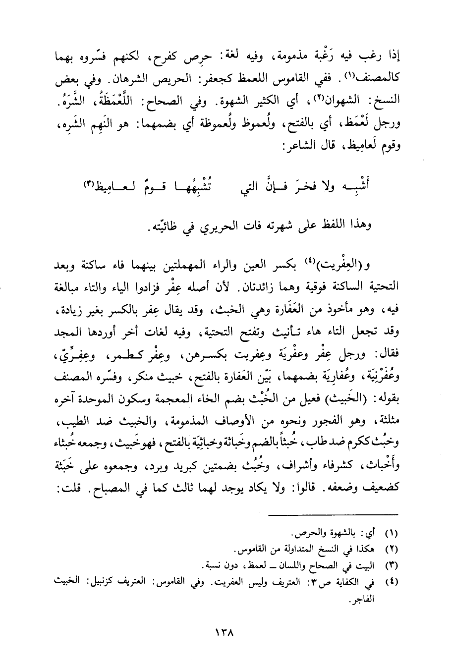 إذا رغب فيه رغبة مذمومة, وفيه لغة: حرص كفرح, لكنهم فسروه بهما كالمصنف. ففي القاموس اللعمظ كجعفر: الحريص الشرهان. وفي بعض النسخ: الشهوان, أي الكثير الشهوة. وفي الصحاح: اللعمظة, الشره. ورجل لعمظ, أي بالفتح, ولعموظ ولعموظة أي بضمهما: هو النهم الشره, وقوم لعاميظ, قال الشاعر: