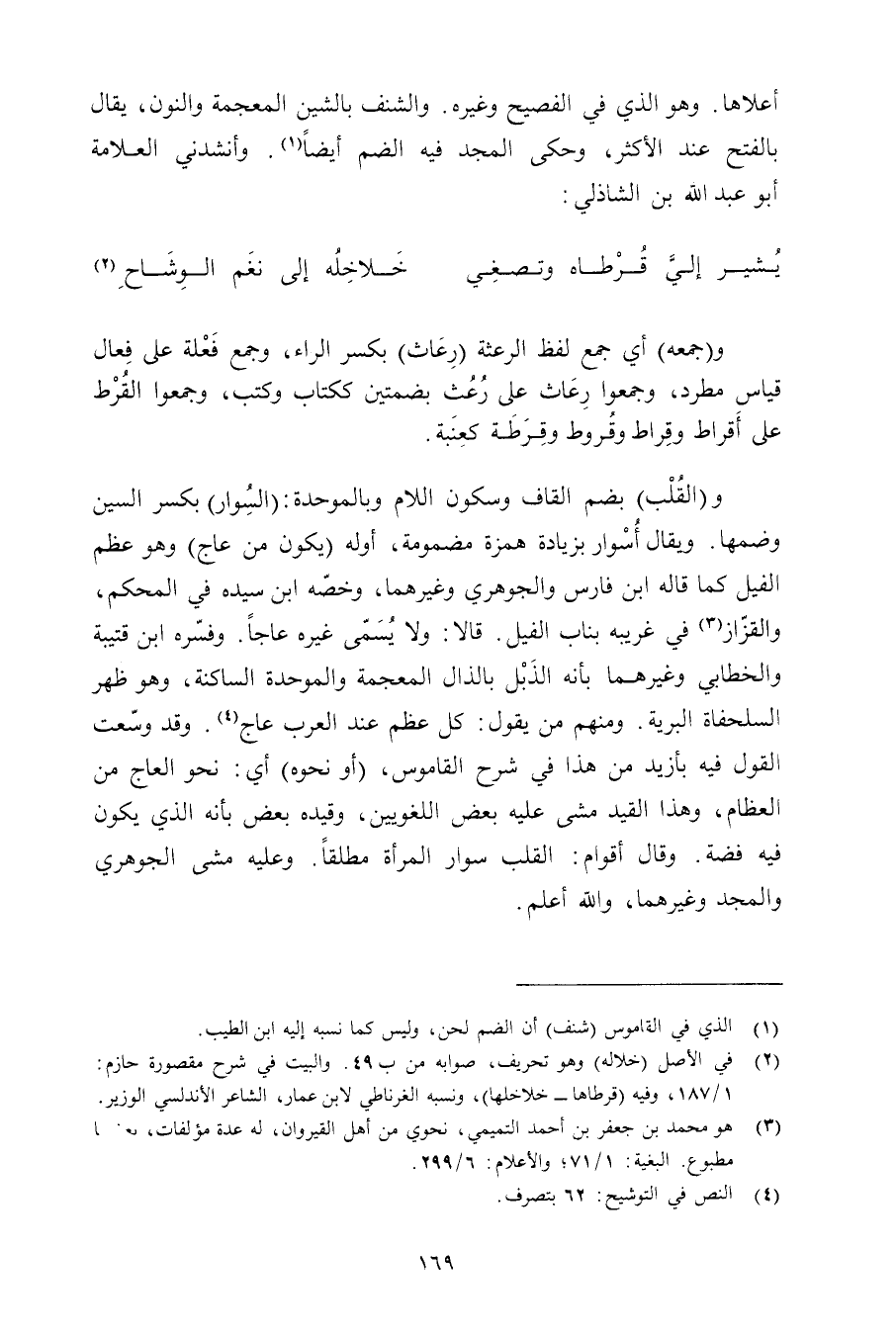 أعلاها. وهو الذي في الفصيح وغيره. والشنف بالشين المعجمة والنون, يقال بالفتح عند الأكثر, وحكى المجد فيه الضم أيضًا. وأنشدني العلامة أبو عبد الله بن الشاذلي: