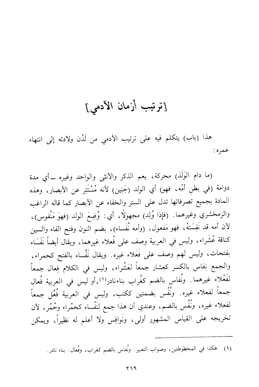 هذا (باب) يتكلم فيه على ترتيب الآدمي من لدن ولادته إلى انتهاء عمره: