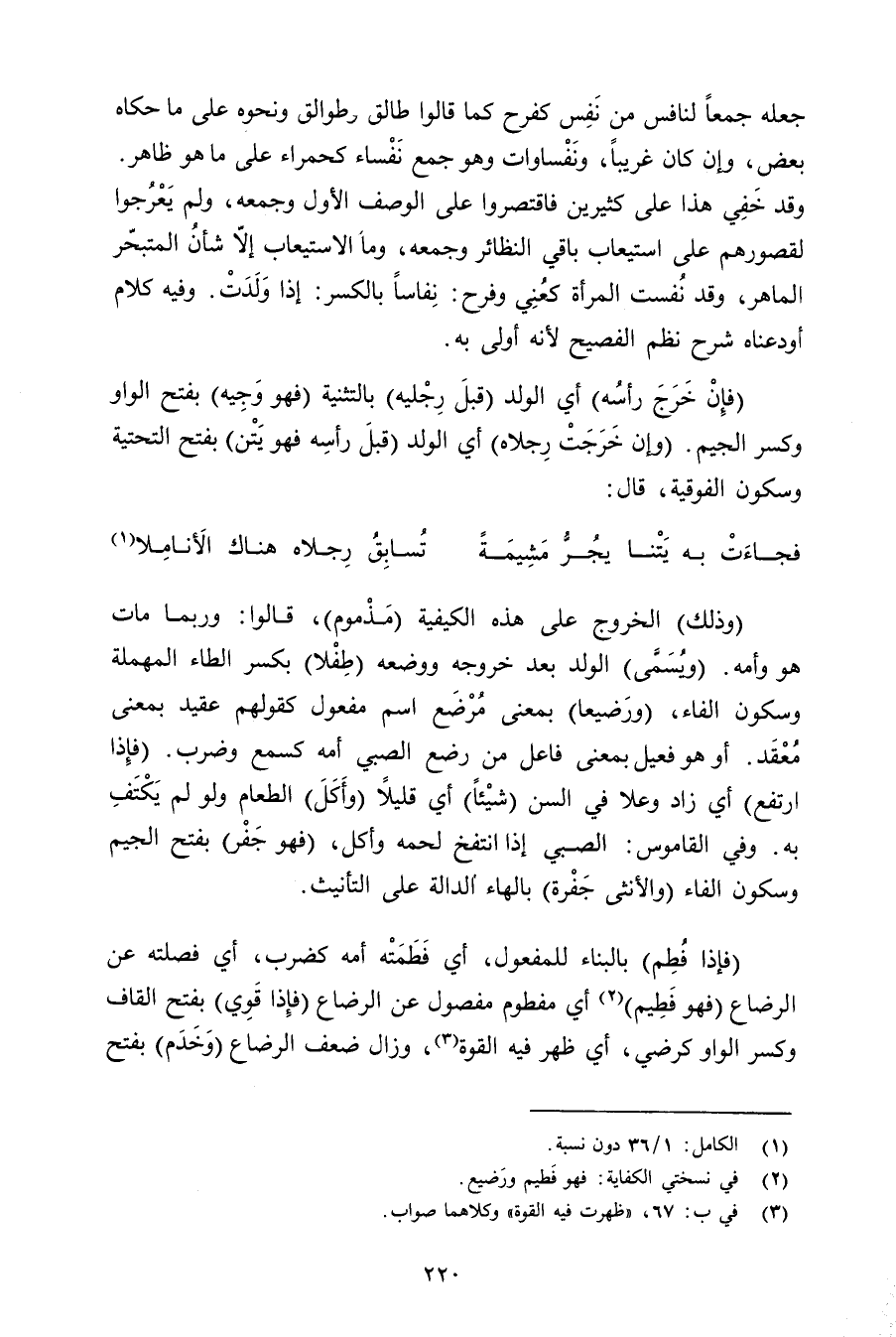 (وذلك) الخروج على هذه الكيفية (مذموم) , قالوا: وربما مات هو وأمه. (ويسمى) الولد بعد خروجه ووضعه (طفلا) بكسر الطاء المهملة وسكون الفاء, (ورضيعا) بمعنى مرضع اسم مفعول كقولهم عقيد بمعنى معقد. أو هو فعيل بمعنى فاعل من رضع الصبي أمه كسمع وضرب. (فإذا ارتفع) أي زاد وعلا في السن (شيئًا) أي قليلًا (وأكل) الطعام ولو لم يكتف به. وفي القاموس: الصبي إذا انتفخ لحمه وأكل, (فهو جفر) بفتح الجيم وسكون الفاء (والأنثى جفرة) بالهاء الدالة على التأنيث.