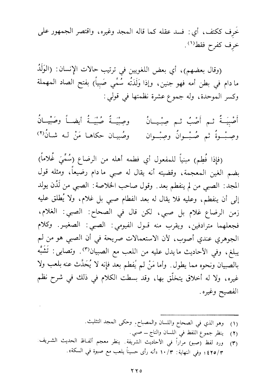 وصبوة ثم صبوان وصبوان ... وصبيان حكاها من له شان