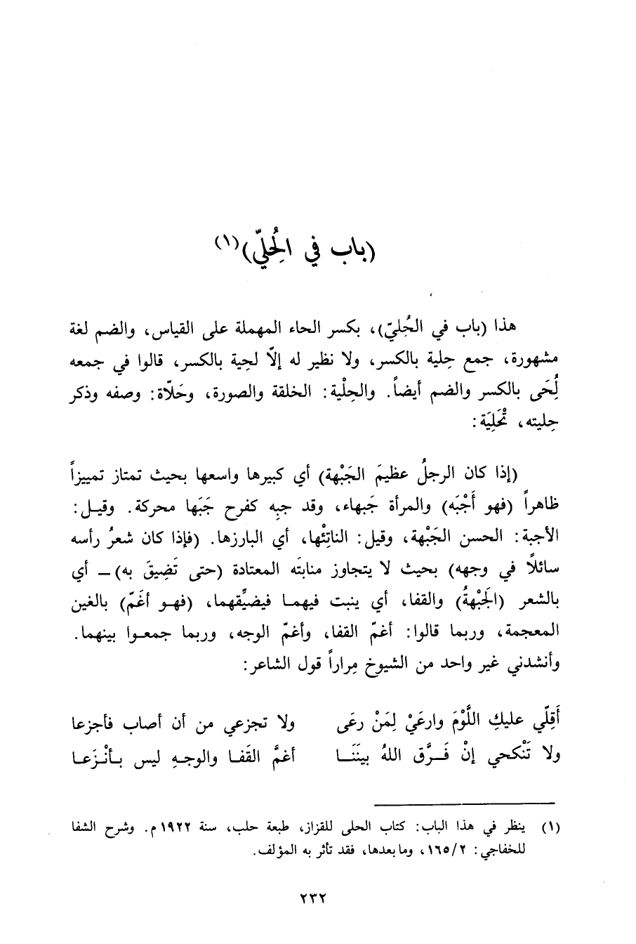 هذا (باب في الحلي) , بكسر الحاء المهملة على القياس, والضم لغة مشهورة, جمع حلية بالكسر, ولا نظير له إلا لحية بالكسر, قالوا في جمعه لحى بالكسر والضم أيضًا. والحلية: الخلقة والصورة, وحلاة: وصفة وذكر حليته, تحلية: